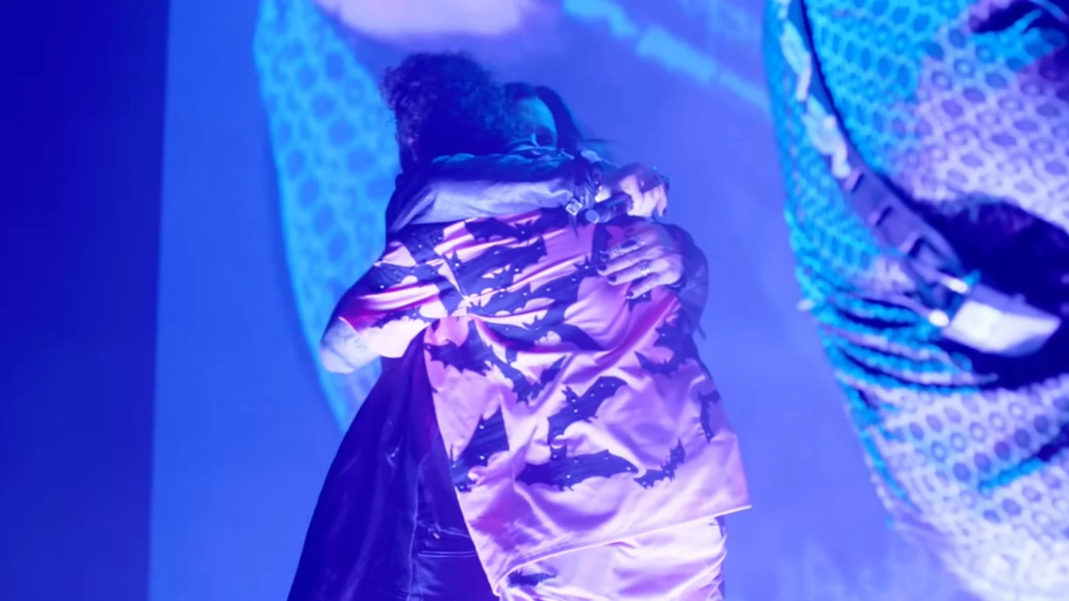 A couple minutes into the performance, Andrew Watt rips on the guitar, and Ozzy and Malone share a pretty wholesome on-stage hug.