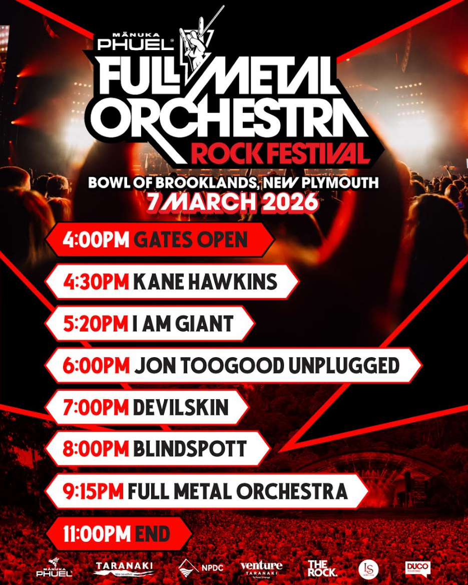 Dust off the leather jackets and get ready to rock, because the Mānuka Phuel Full Metal Orchestra is back for 2026, taking over the iconic Bowl of Brooklands in New Plymouth this Saturday, March 7th.