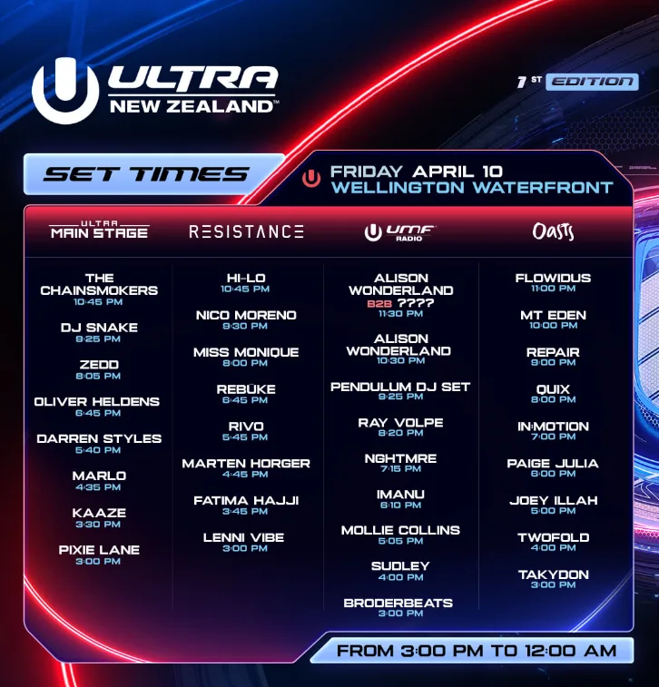 The electronic music scene is gearing up to take over Wellington this week with Ultra Music Festival hitting the waterfront for the first time ever this Friday, 10 April 2026.