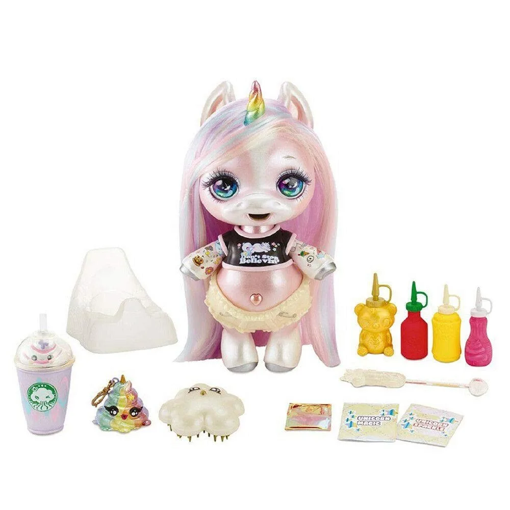 The unicorn goes: "My poops, my poops my poops my poops. Whatcha gonna do with all that poop, all that poop." "I drive my parents crazy, I do it every day."