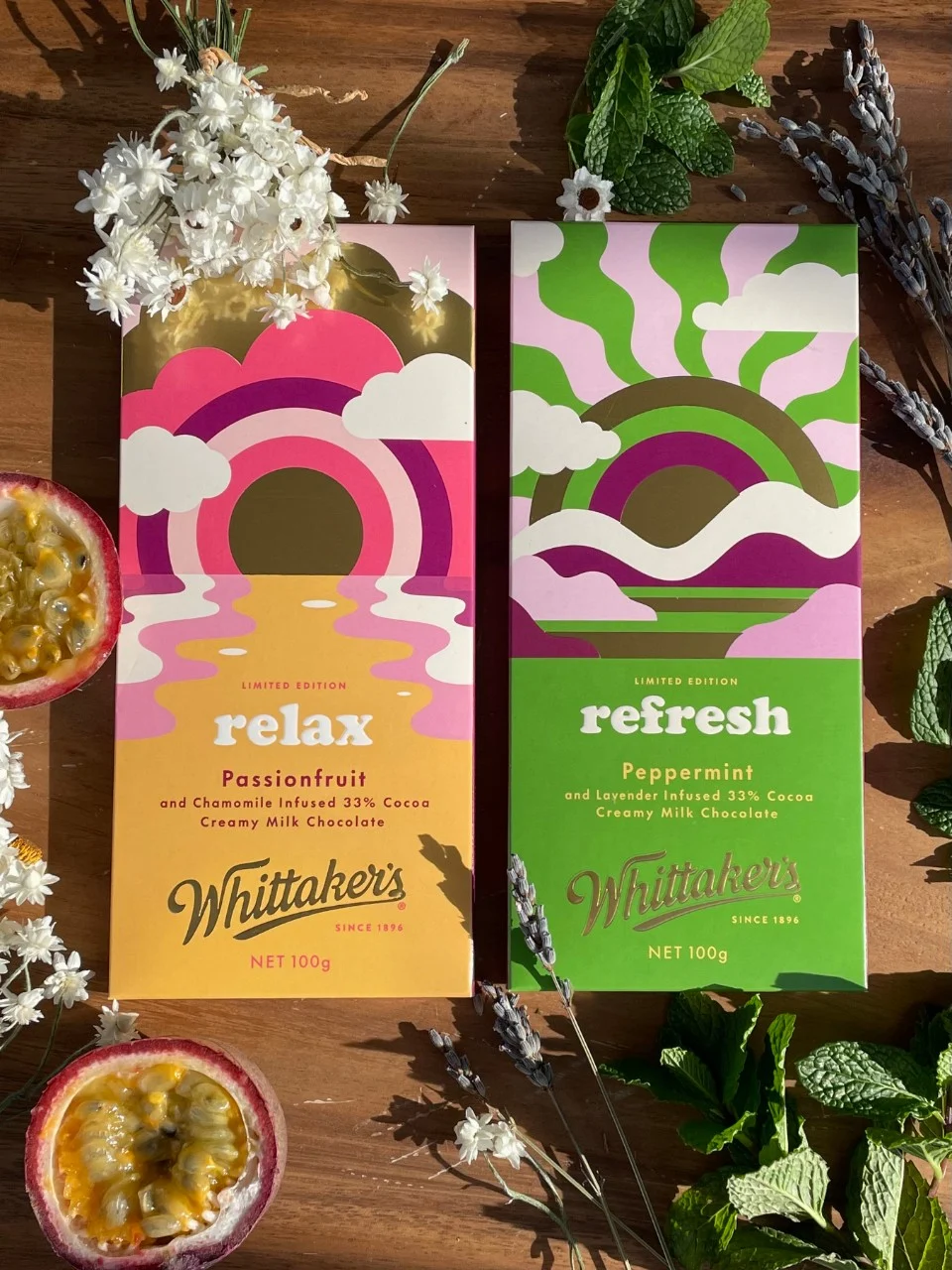 NZ chocolate giants Whittakers have announced they're releasing two new flavours, and they're a little unusual sounding. The 'Relax' flavour combines Whittaker's creamy milk chocolate with Peppermint and Lavender, while the 'Refresh' flavour merges it with Passionfruit and Chamomile.