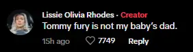 Now, she's defending herself—and rightly so—simply clarifying: "Tommy Fury is not my baby's dad."