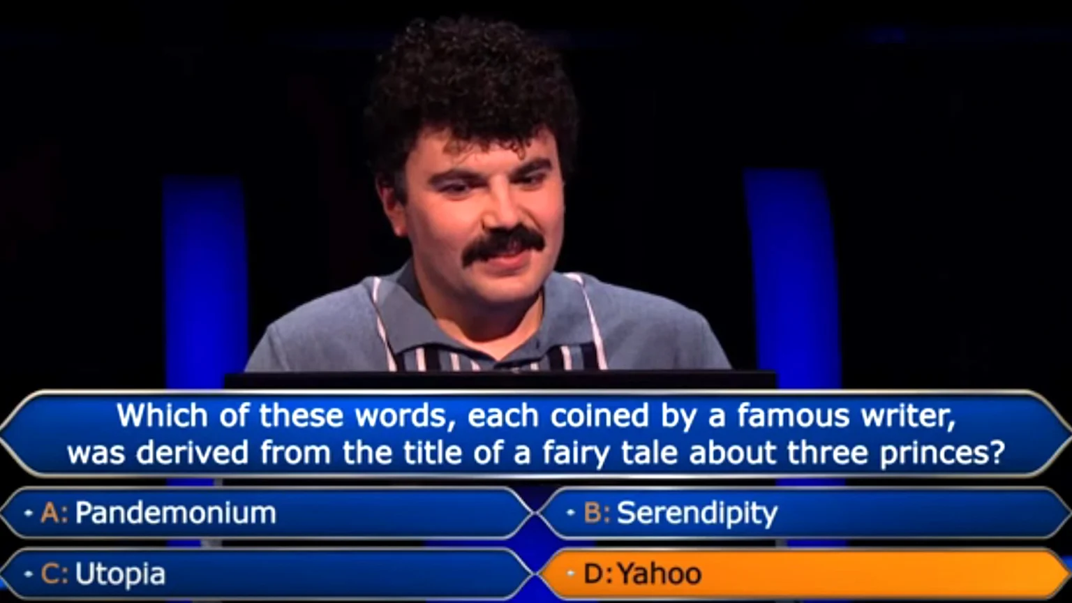 Unfortunately, luck wasn’t on his side this time. Despite answering “D: Yahoo,” the suspenseful reveal showed that “Serendipity” was the million-pound answer.