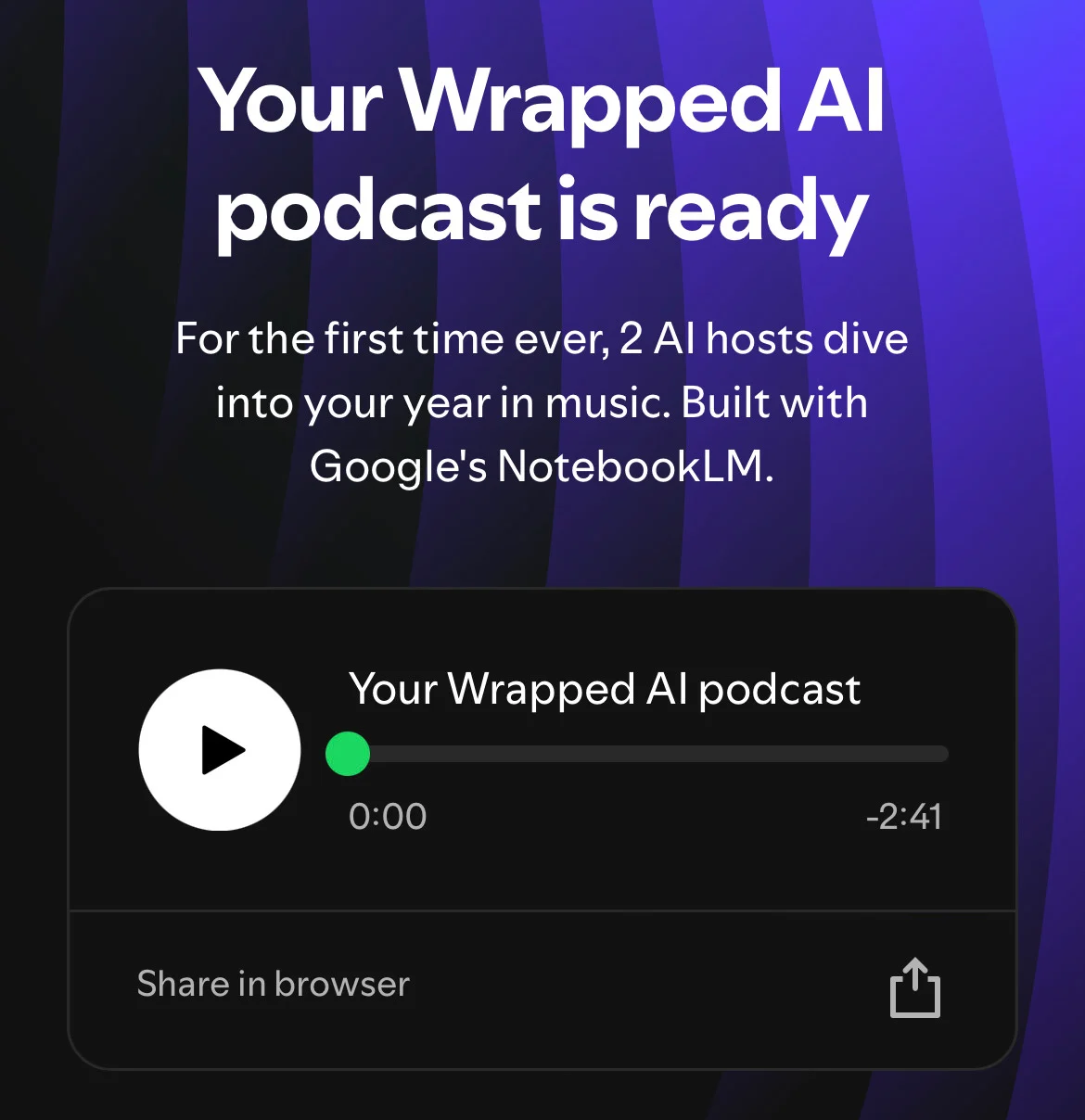 Your 2024 music journey now comes with its very own AI podcast. Spotify and Google's NotebookLM tech have whipped up a bite-sized episode all about you and your tunes.