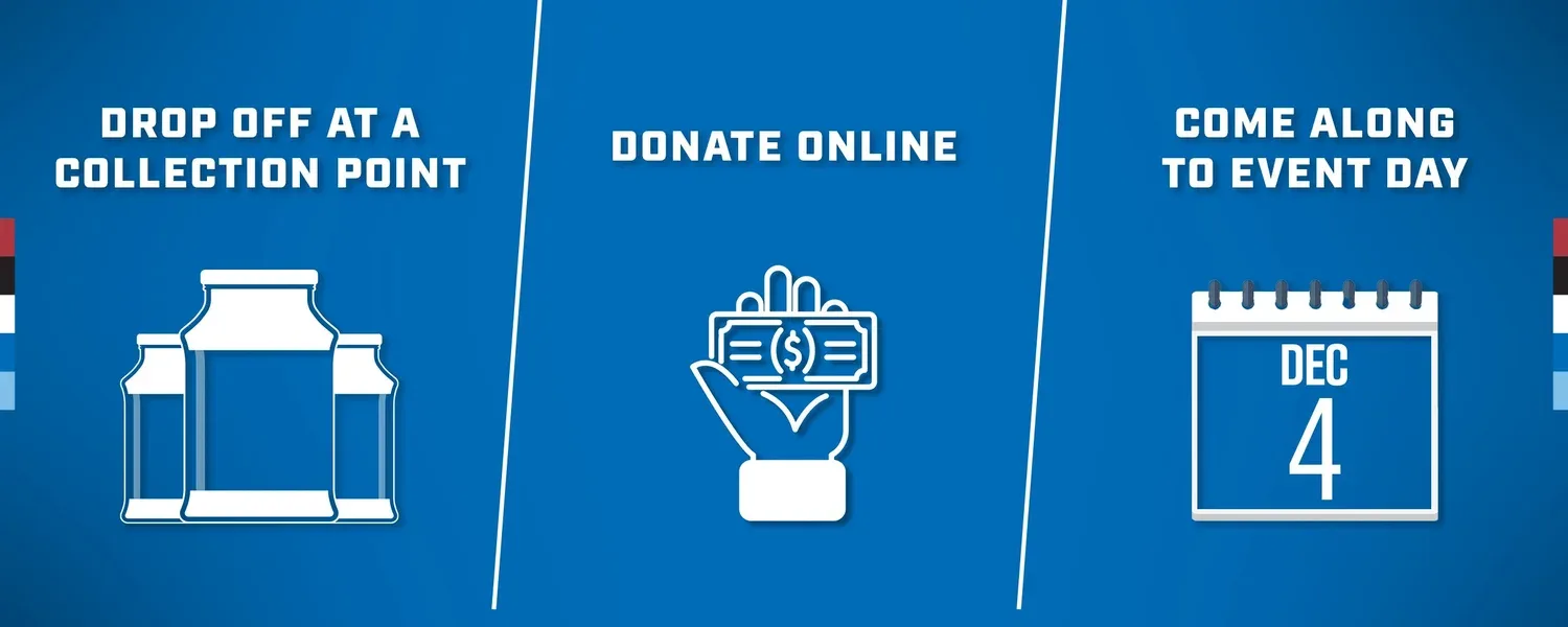 Anyone can get involved by donating online or bringing food to the event day at Blues HQ on Thursday the 4th of December.