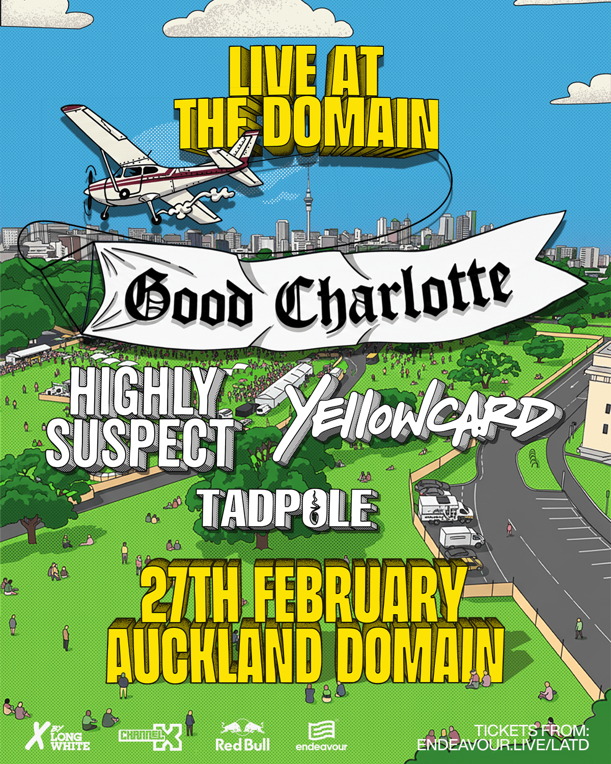 One of New Zealand’s favourite US Rock band’s HIGHLY SUSPECT and one of our most influential NZ rock bands TADPOLE will be joining already announced headliners in multi-platinum pop-punk rock royalty, GOOD CHARLOTTE, and beloved American pop-punk, alt-rock royalty YELLOWCARD on FEBRUARY 27, 2026 at Auckland’s Domain.