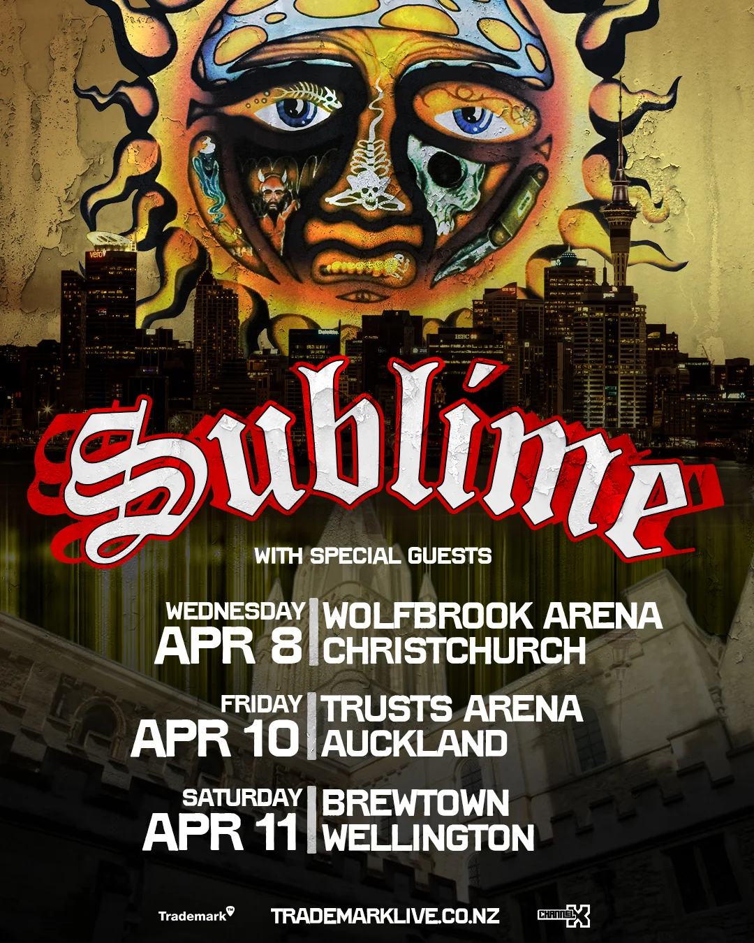 The wait is finally over. California ska-punk icons Sublime are set to perform their first-ever New Zealand tour, bringing their legendary fusion of reggae, punk, and hip-hop to our shores this April.
