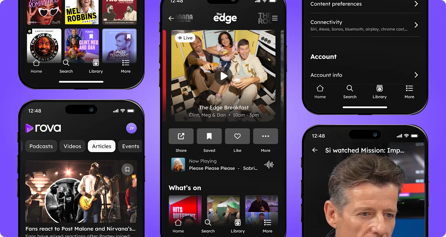 Live Radio & Podcasts: Listen to the stations you know and love, plus the biggest range of New Zealand podcasts. Catch up on rova originals and your go-to shows anytime.