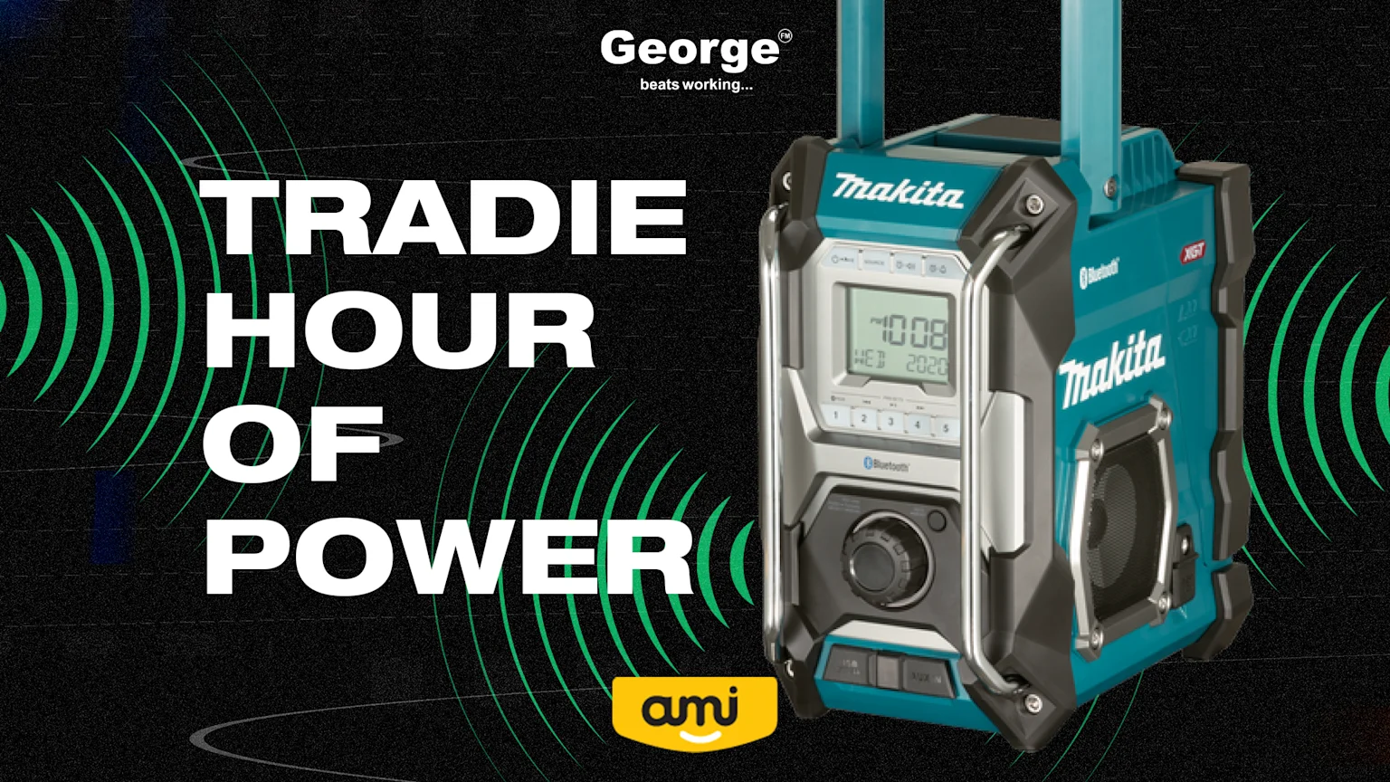 Keep George FM Mahi Mix loud every weekday from 1-2pm; send us a text to 966 with the keyword POWER and your song request for a chance to win a Makita Tradie Radio thanks to AMI and their Tradies Bundle!