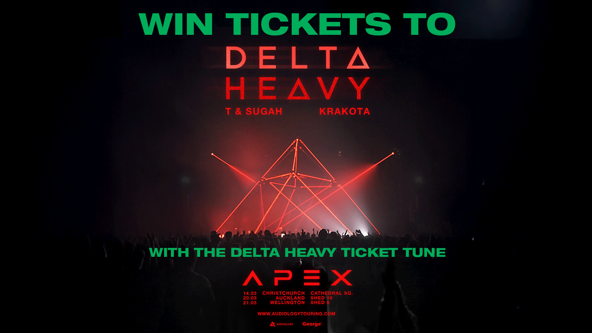 Listen out for the Ticket Tune every day this week (a tune by Delta Heavy accompanied by a cue-to-call) and be the first caller through on 0800 FM GEORGE to score a Double Pass to the Delta Heavy APEX show of your choice.